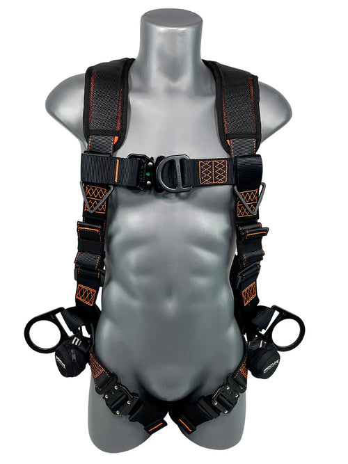 Full-body harnesses, shock-absorbing lanyards, and SRLs. Professional gear for Canadian industrial use.